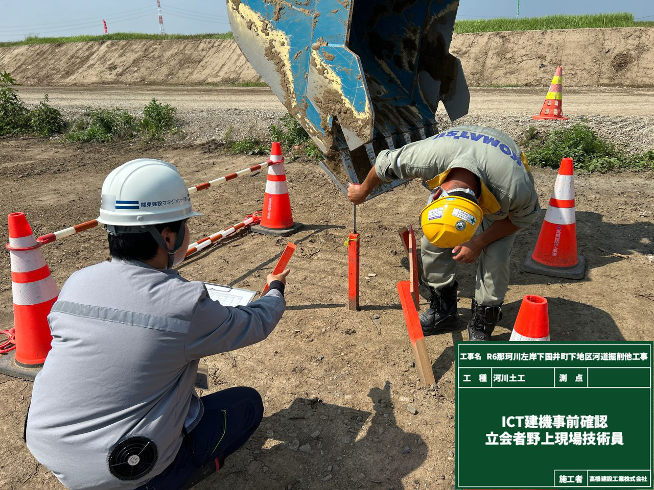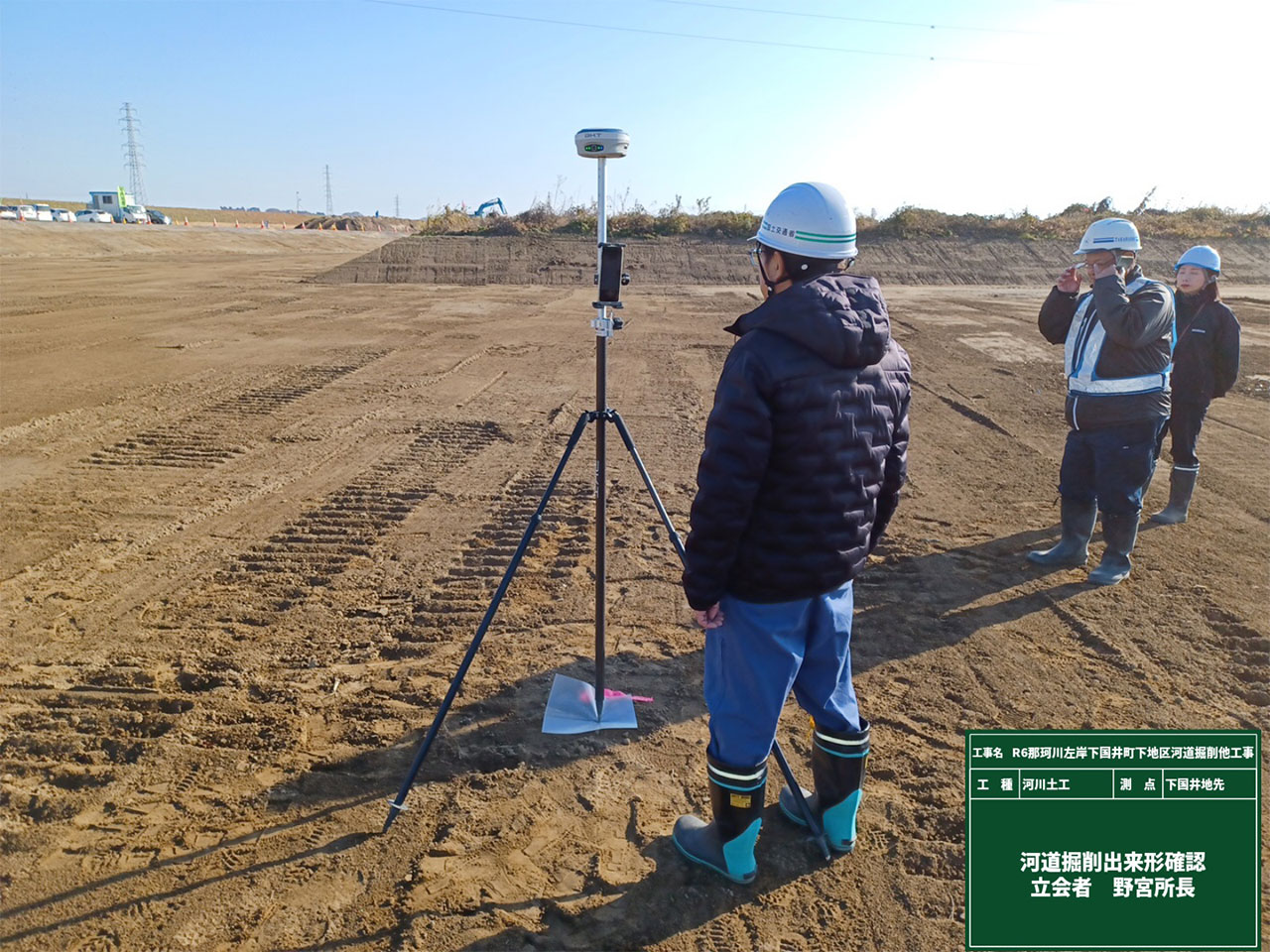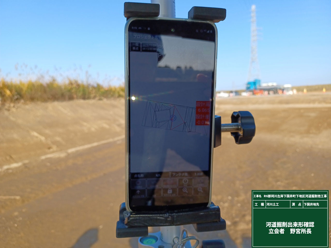 今日は、同じ測位システムを使って、発注者立会いでの出来形確認です。