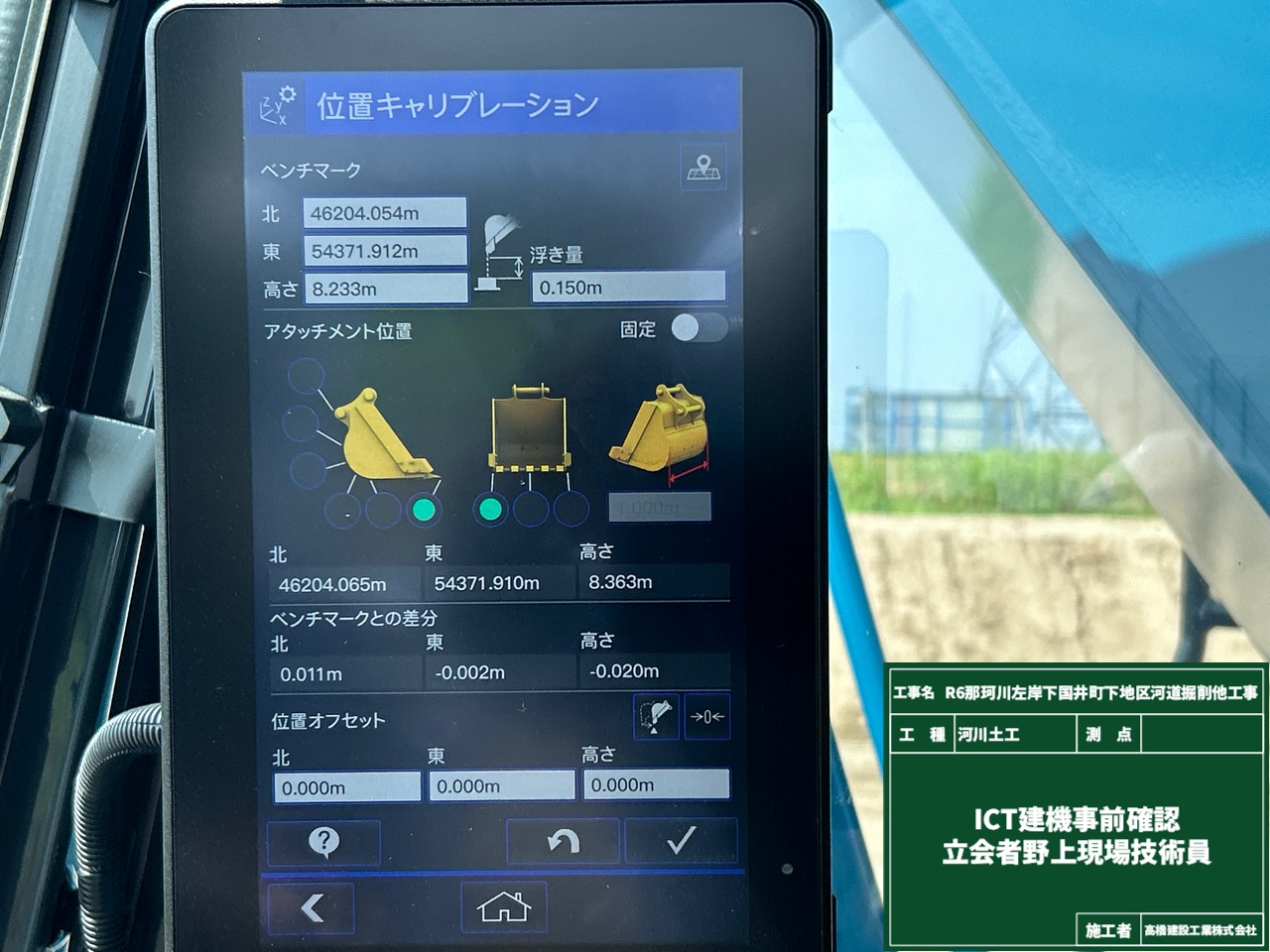 浮き量を確認し、実際にICT建機が正確な位置を示しているかを確認します。
