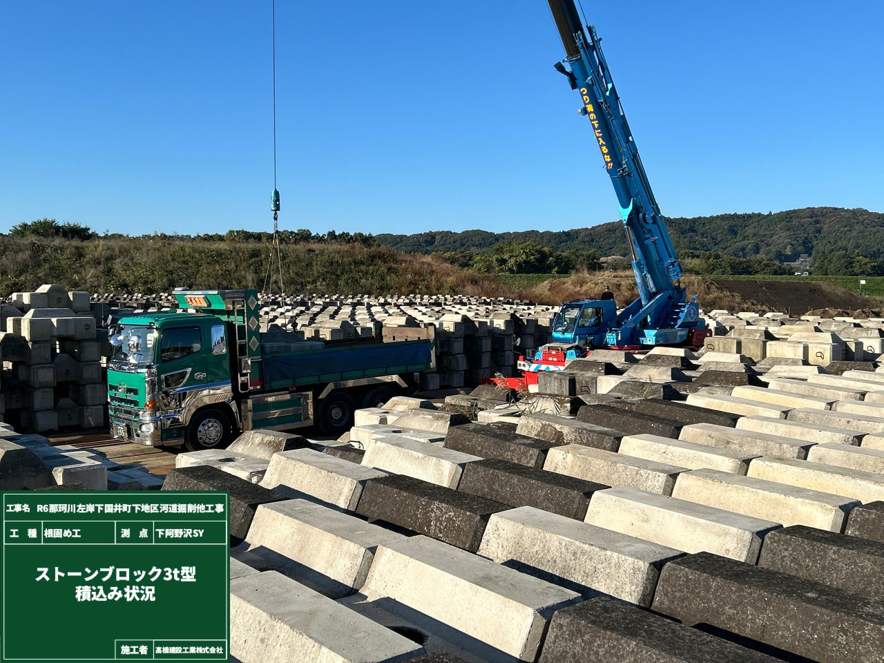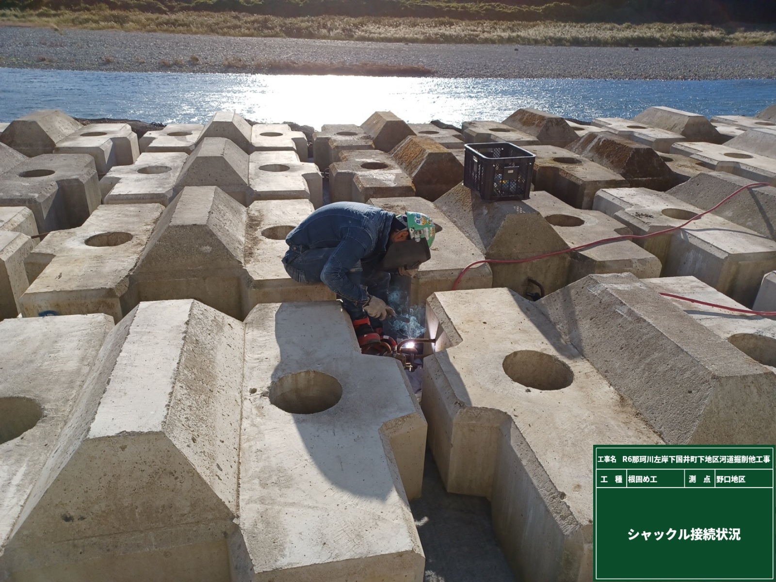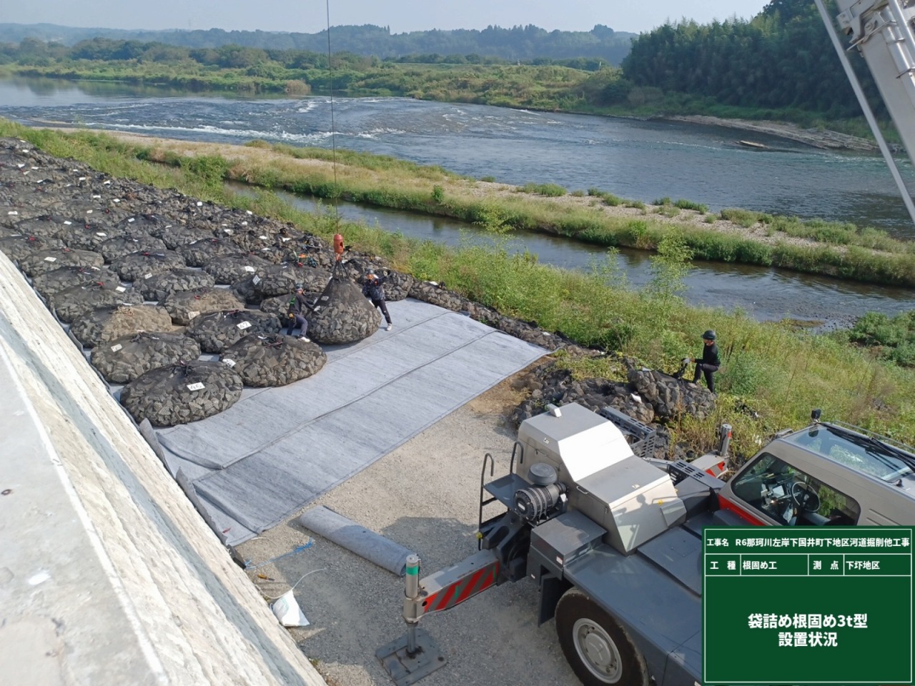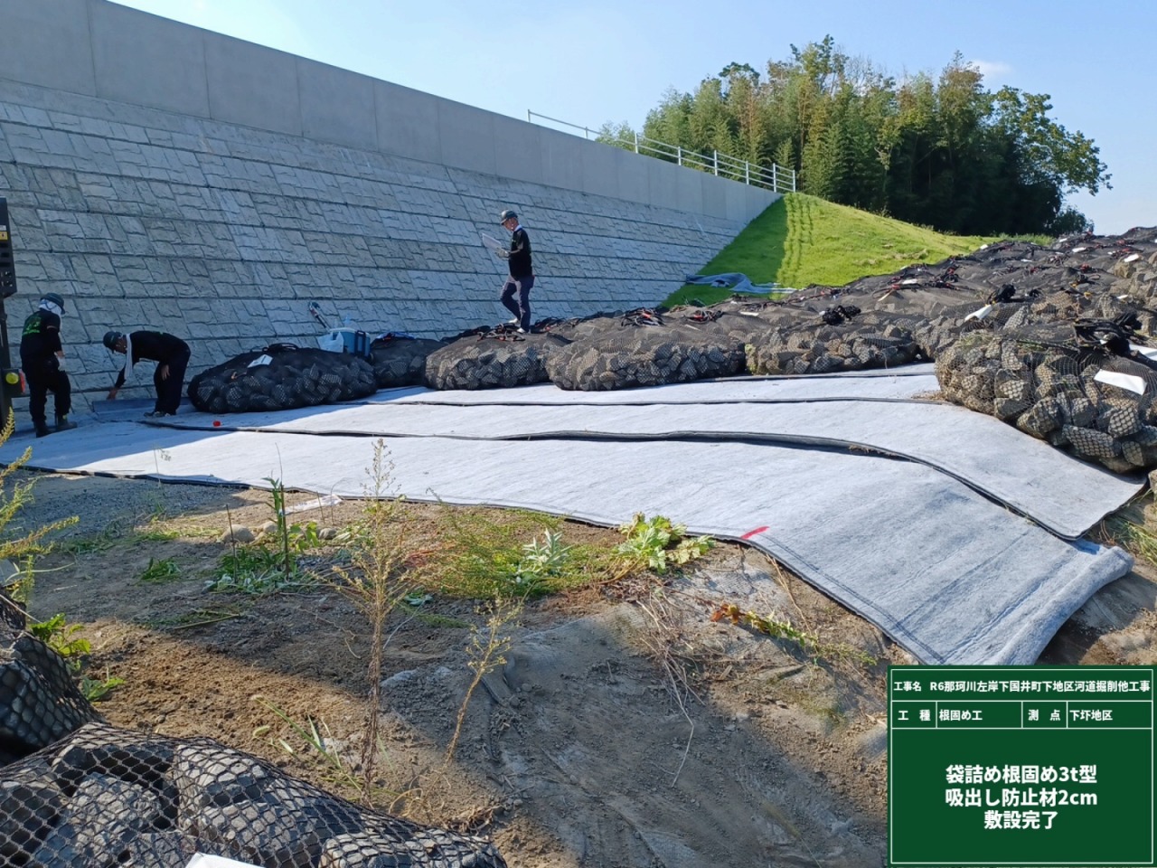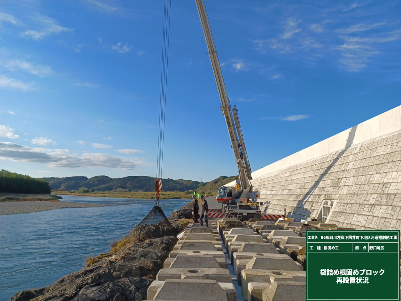 以前ご紹介した根固めブロックの敷設が完了しました!