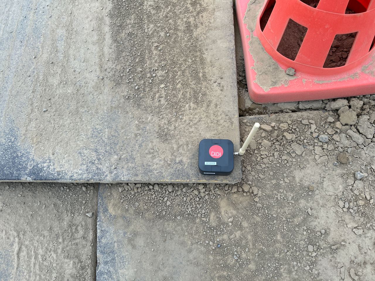 さて、敷鉄板の角に設置されているこの四角い装置■
